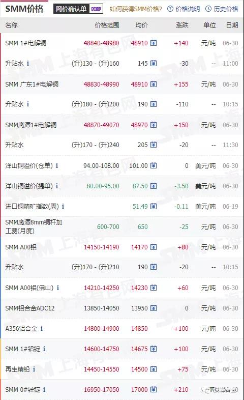 俊霖合金解讀:6月30日有色金屬行情
