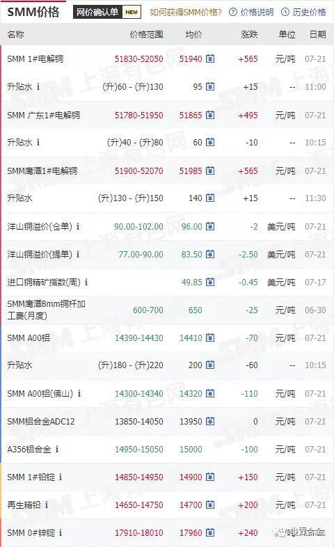 上海有色金屬最新行情