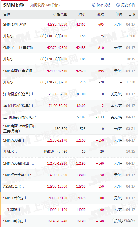俊霖合金解讀:4月17日有色金屬行情