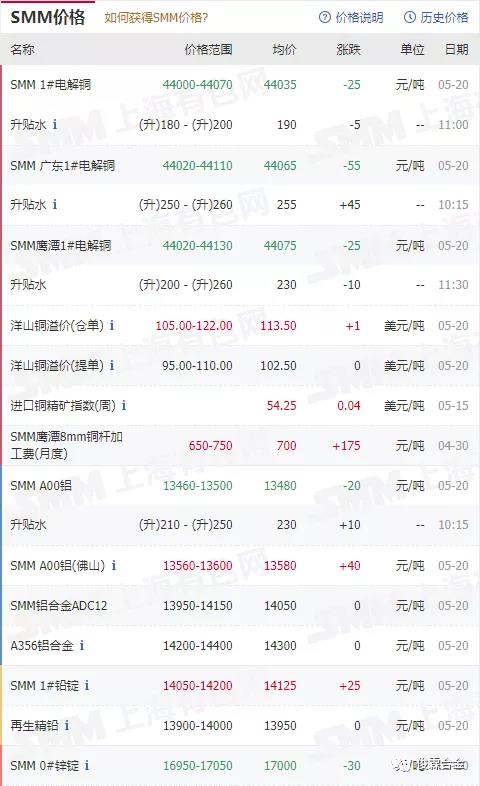 俊霖合金解讀:5月20日有色金屬行情